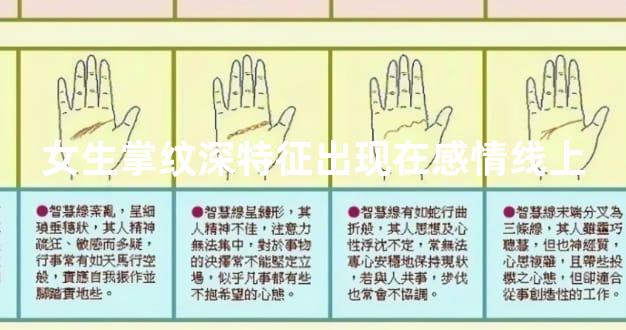 女生掌纹深特征出现在感情线上